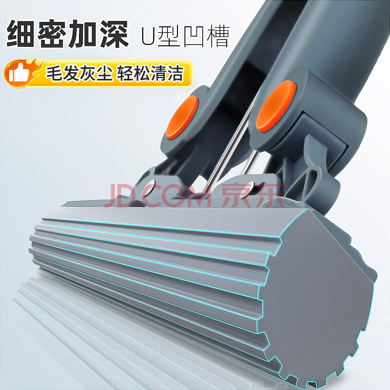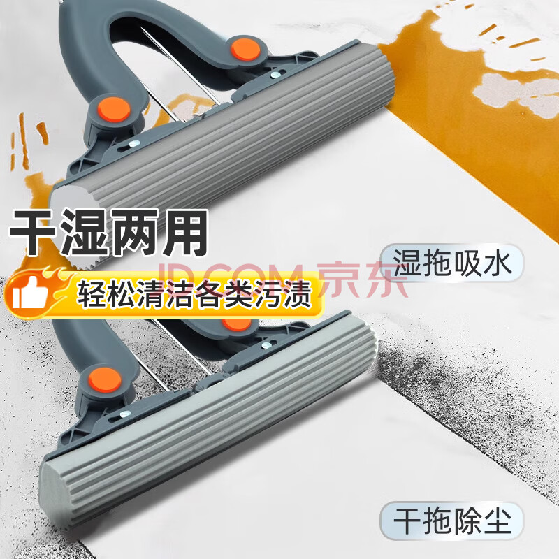 商品相册:伊司达海绵拖把33cm不锈钢杆长131cm共2头家用一拖净免手洗吸水胶棉拖把第