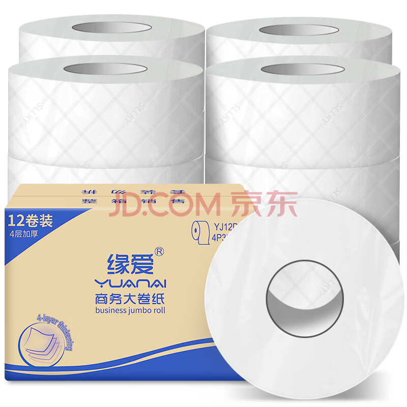 商品相册:缘爱大卷纸4层380克*12卷 大盘纸商场酒店厕所专用卫生纸加厚厕纸整箱第