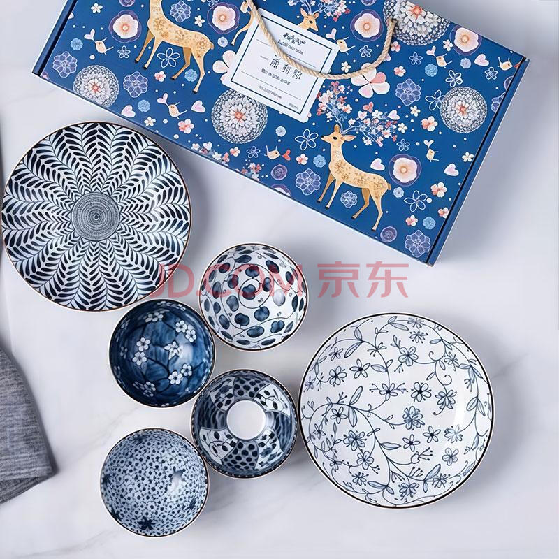 商品相册:几物森林 餐具中式碗碟套装碗具面碗饭碗筷组合整套盘送礼 手提礼盒6件套第