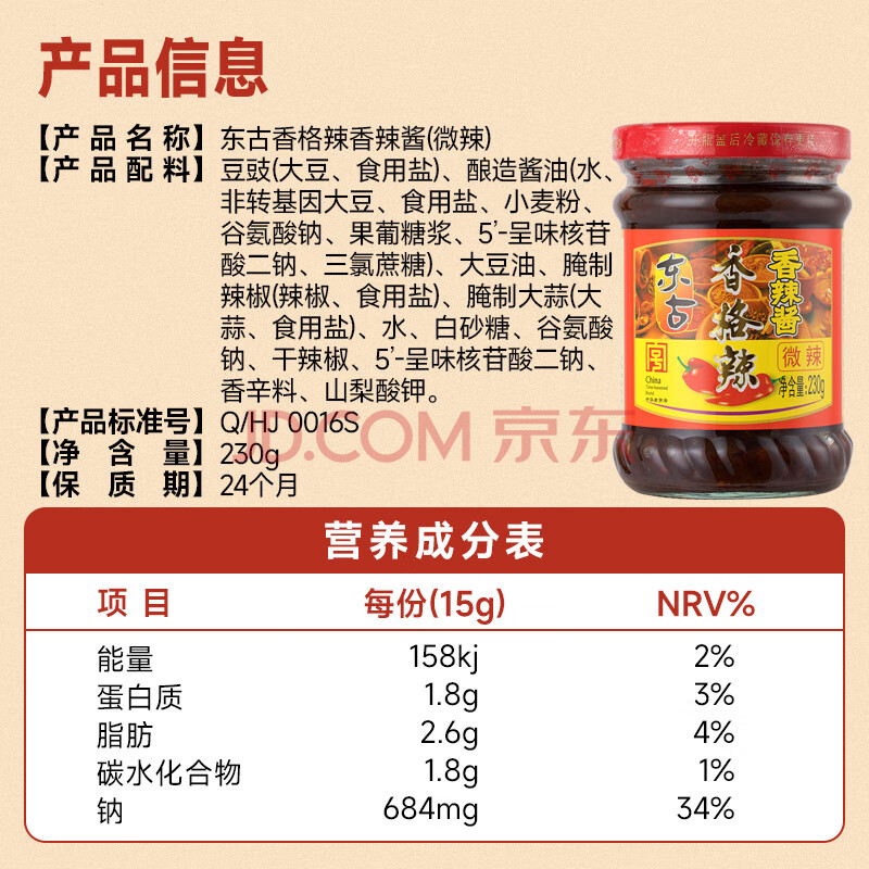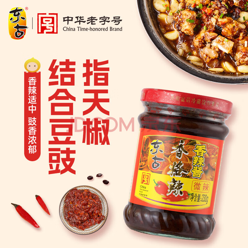 商品相册:东古 辣椒酱 香格辣香辣酱230g 指天椒豆豉酱拌饭拌面酱调味酱第