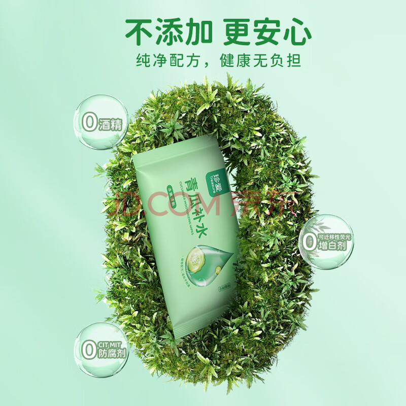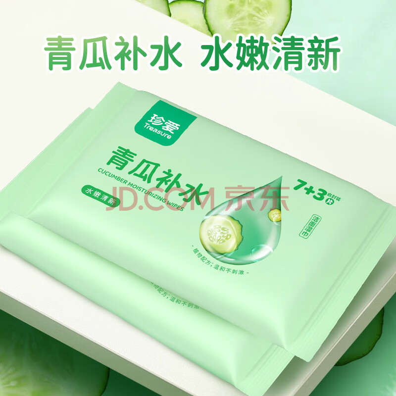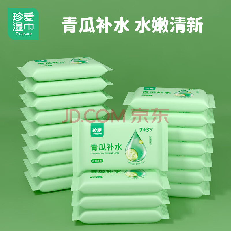 商品相册:珍爱湿巾小包 青瓜补水擦汗擦脸清洁肌肤湿纸巾10片*20包便携小包装第