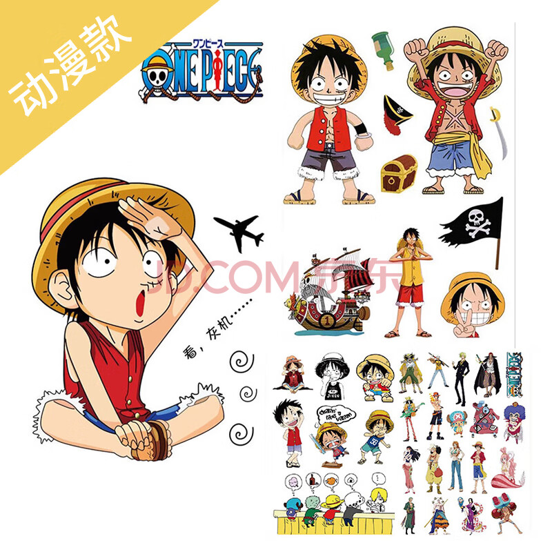 商品相册:欣沁 动漫卡通箱贴 防水无痕贴纸 汽车滑板个性贴A4纸 海贼王4张第