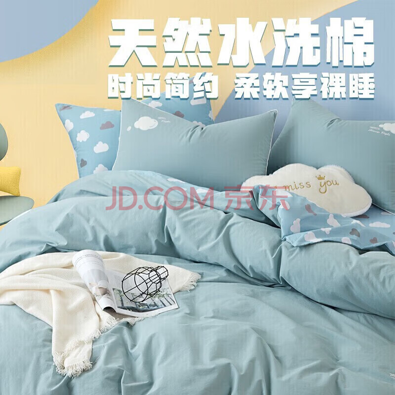 商品相册:LOVO罗莱家纺 水洗棉四件套 纯棉套件全棉床笠床上被套200*230cm第