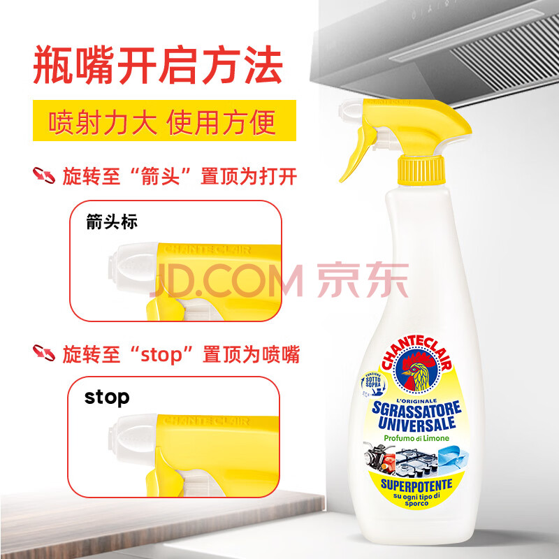 商品相册:大公鸡管家(CHANTE CLAIR)多功能油污净600ml 柠檬香强力厨房重油污清洁剂油烟机净第