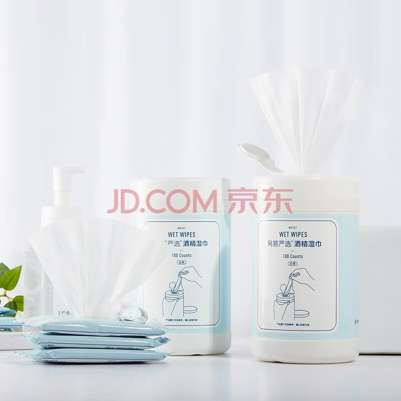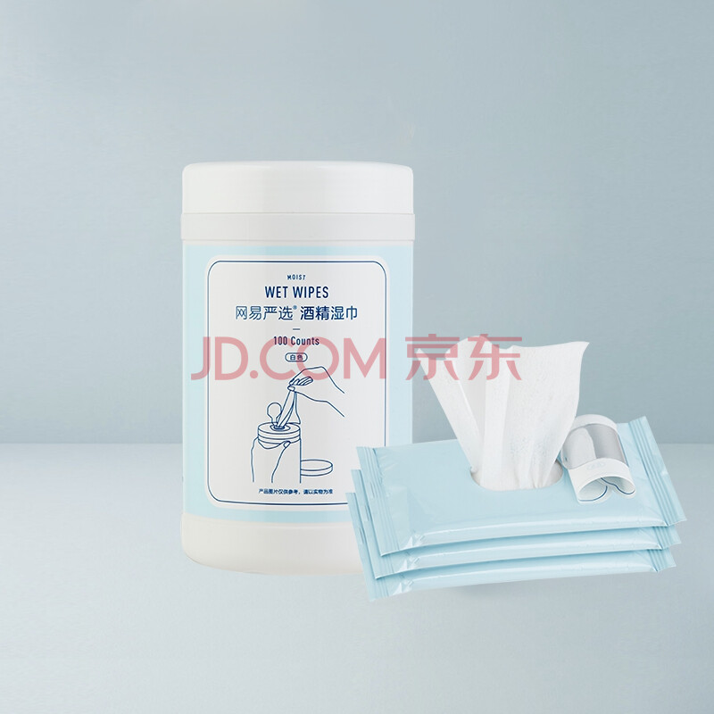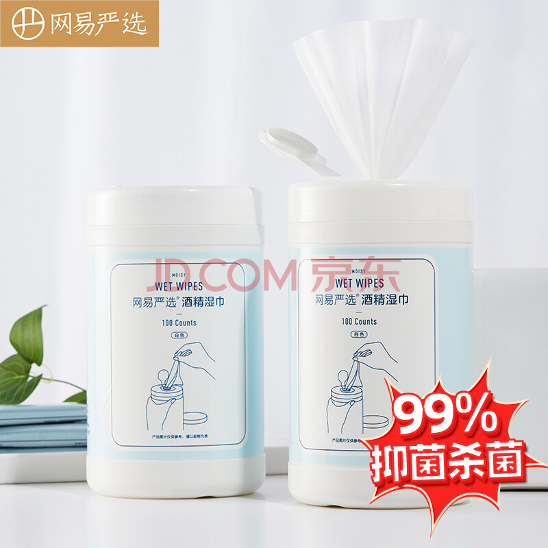 商品相册:网易严选30%酒精消毒湿纸巾100片 桶装款多功能湿巾卫生湿巾免洗清洁第