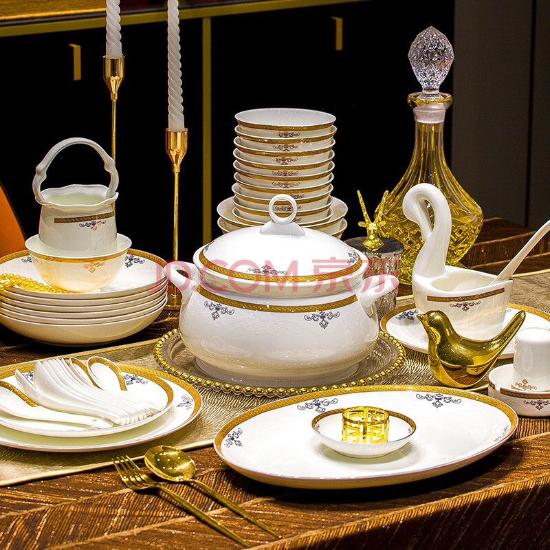 商品相册:冠朴2025新款碗碟套装家用欧式景德镇轻奢陶瓷器碗盘套装碗盘餐具组合第