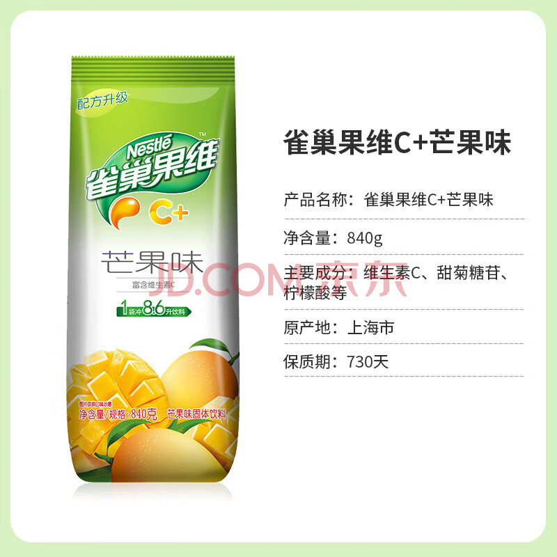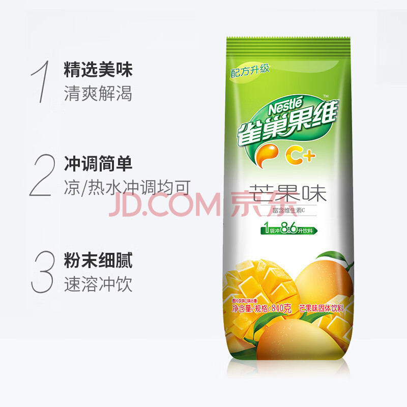 商品相册:雀巢(Nestle)果维C+芒果味840g/袋 富含维C 低脂果珍冲饮果汁粉第