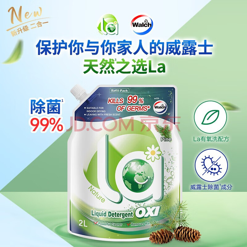 商品相册:威露士(Walch)La有氧洗衣液袋装抑菌除螨松木清香2L*2袋 【8斤装】第