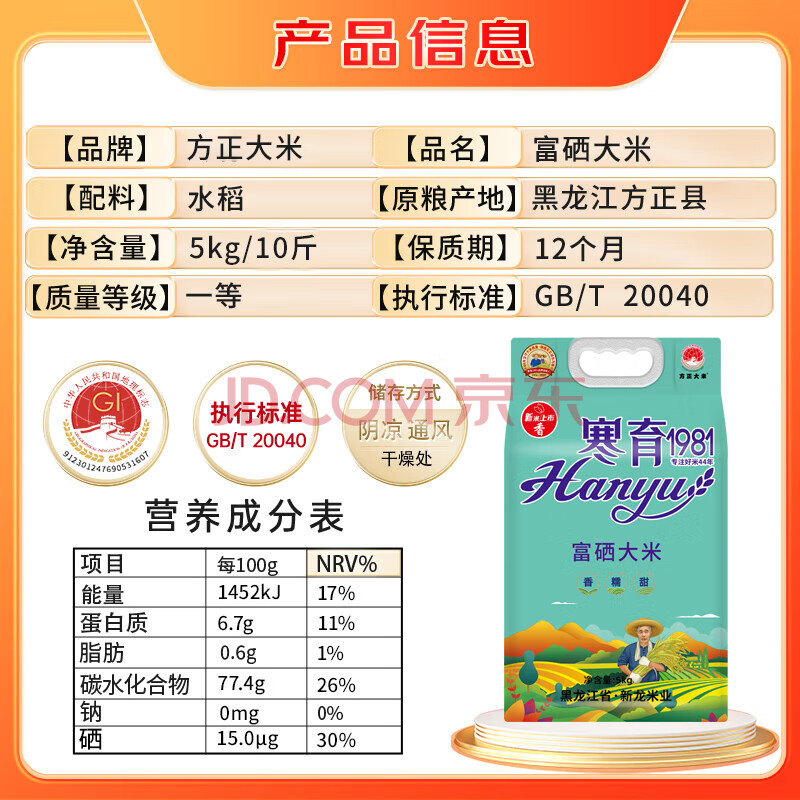 商品相册:方正大米2025年新米【富硒】 5kg/10斤 地标 东北大米粳米 双层真空包装第