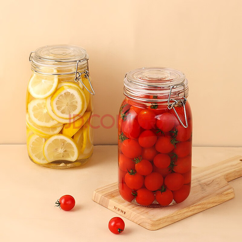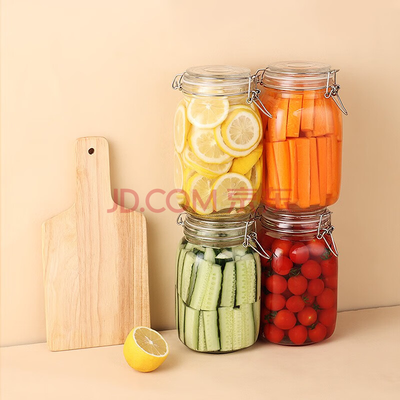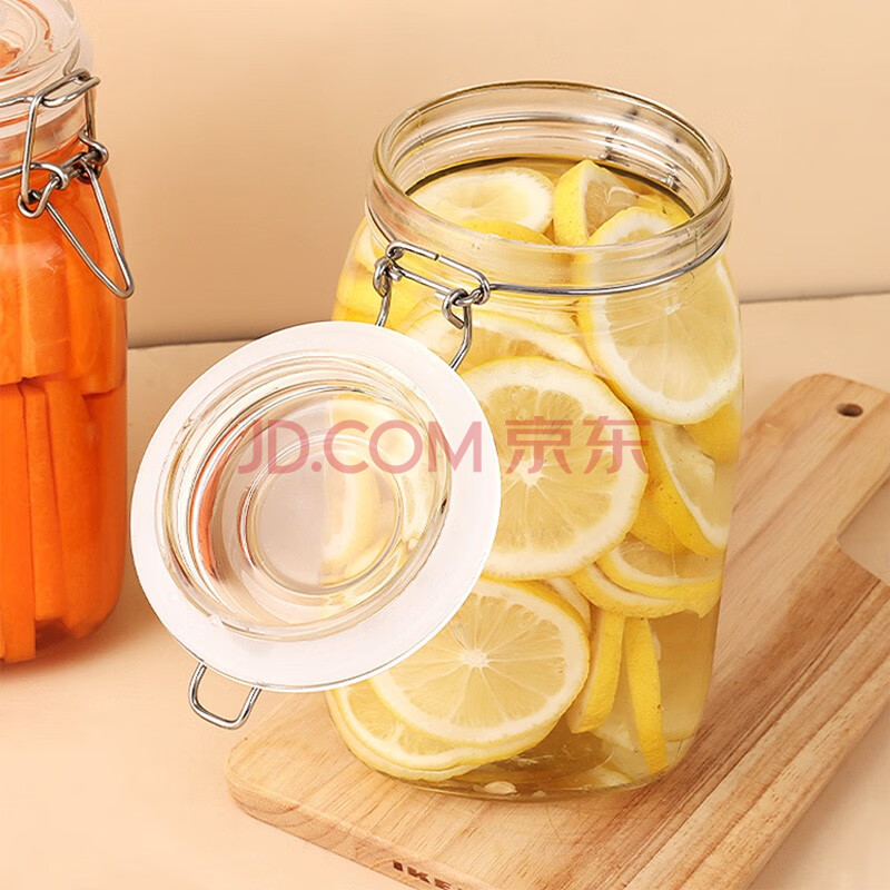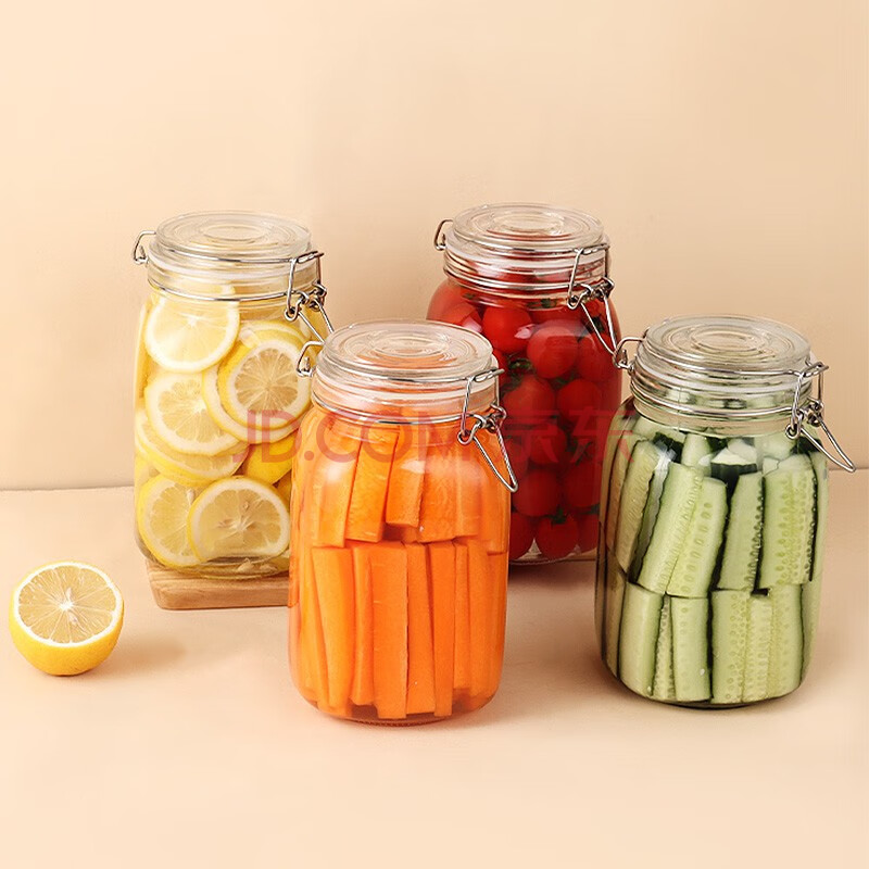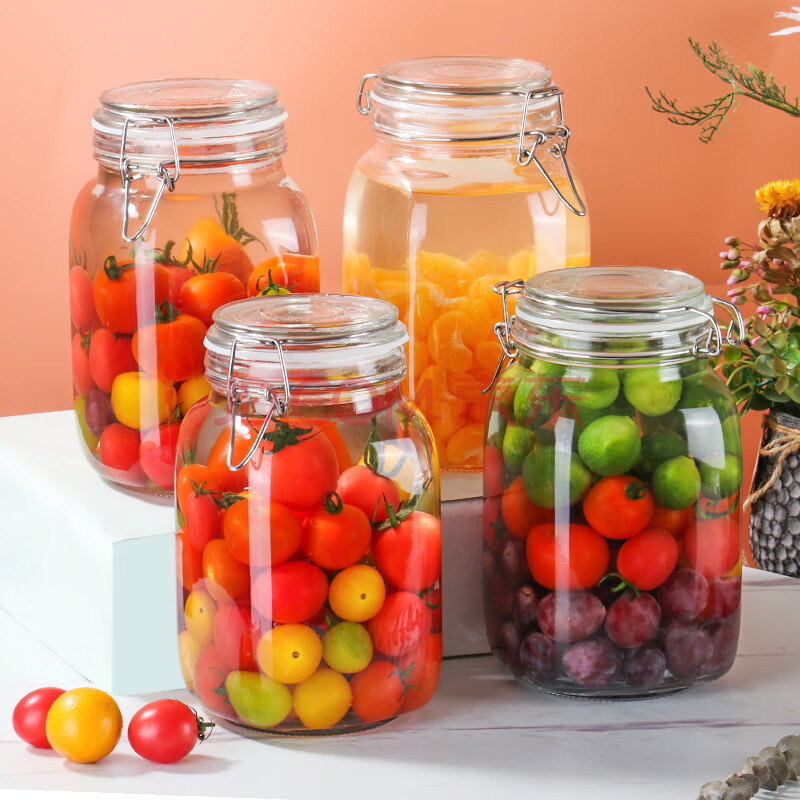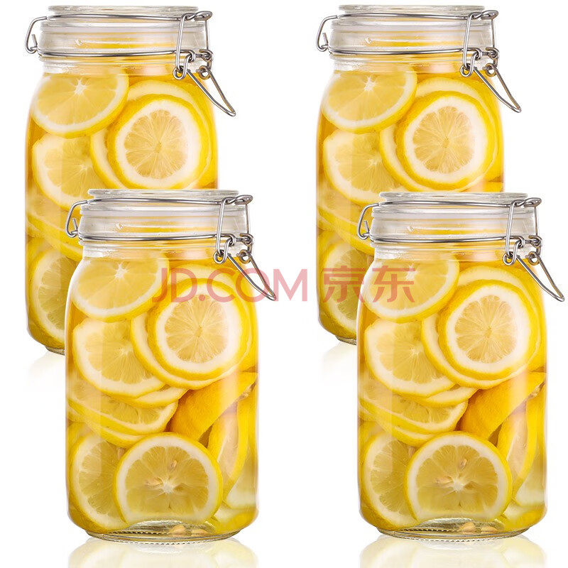 商品相册:拜杰玻璃密封罐子泡酒瓶4个装1500ml泡菜坛子罐五谷杂粮储物罐密封罐第