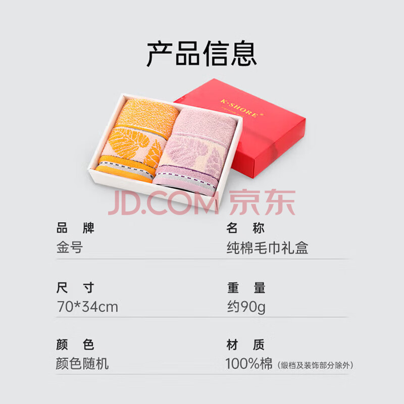 商品相册:金号毛巾礼盒 A类纯棉毛巾强吸水2条装企业福利礼盒 颜色随机第