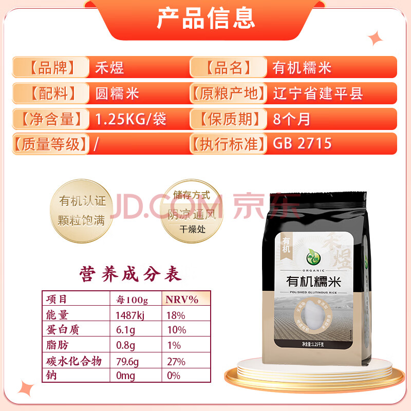 商品相册:禾煜有机糯米 2.5斤 (江米 五谷 杂粮 有机食品粥米伴侣)第
