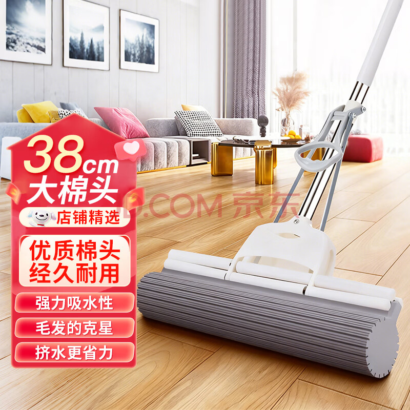 商品相册:千屿大号38cm双排滚轮挤水海绵拖把免手洗胶棉拖把吸水海绵头拖布第