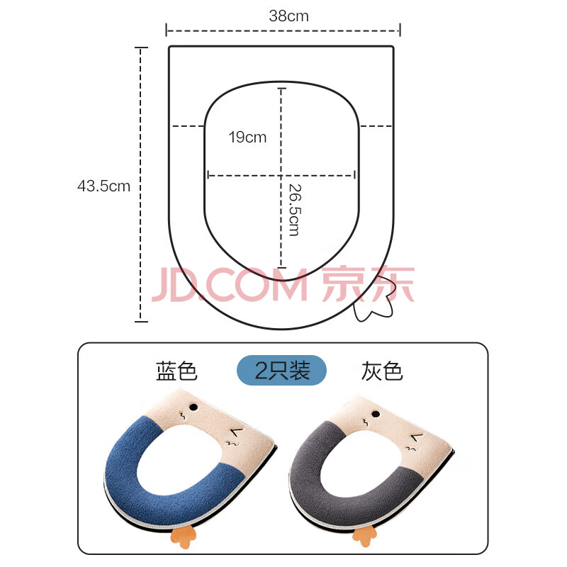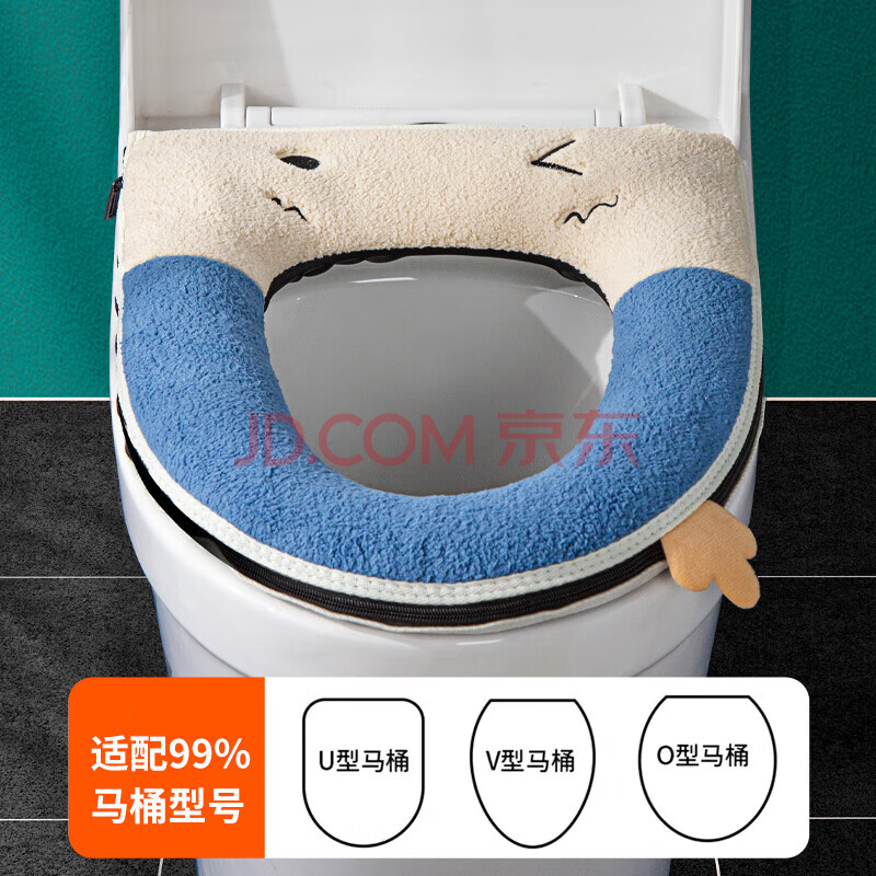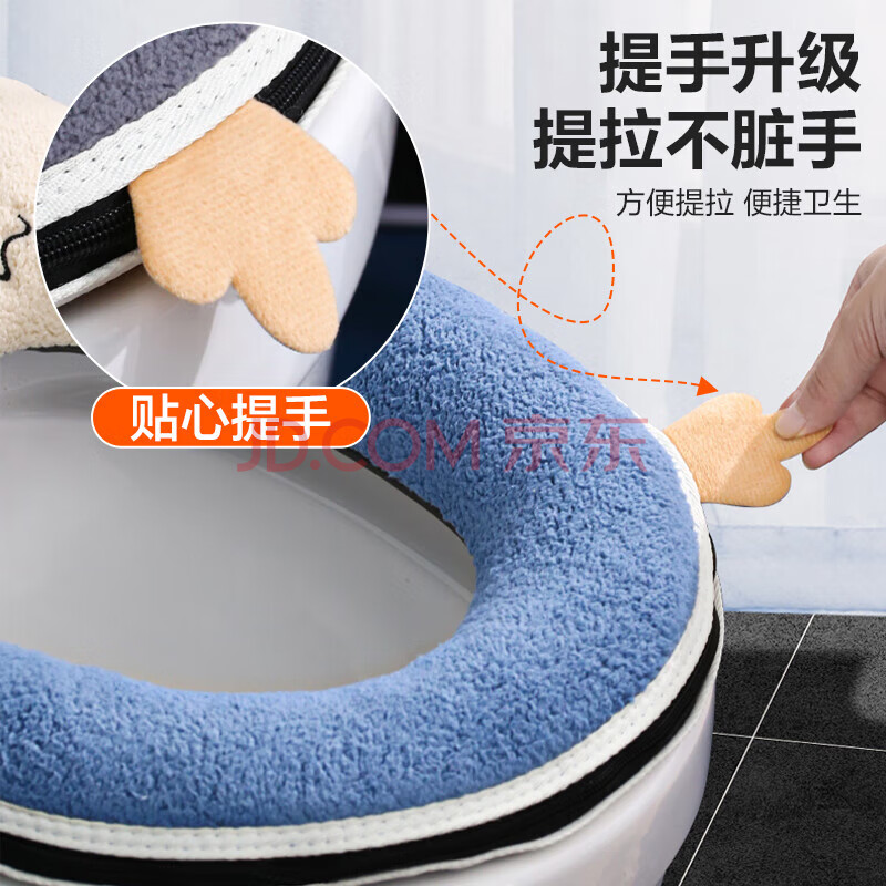 商品相册:晟旎尚品 抗菌加厚马桶垫子 拉链式保暖防水冬季坐便垫套马桶圈坐垫2只装 第