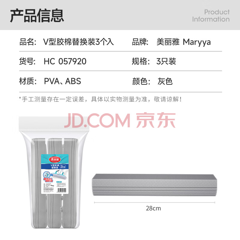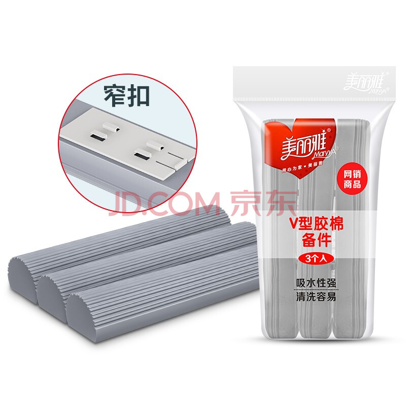 商品相册:美丽雅胶棉拖把替换头 28cm3个装 窄扣 海绵拖把适用对折挤水海绵拖布第