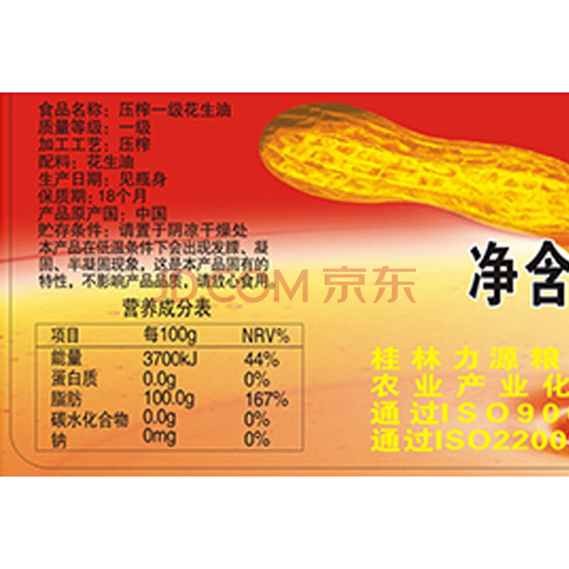 商品相册:力源花生油 压榨一级花生油2.5L第