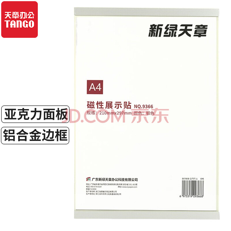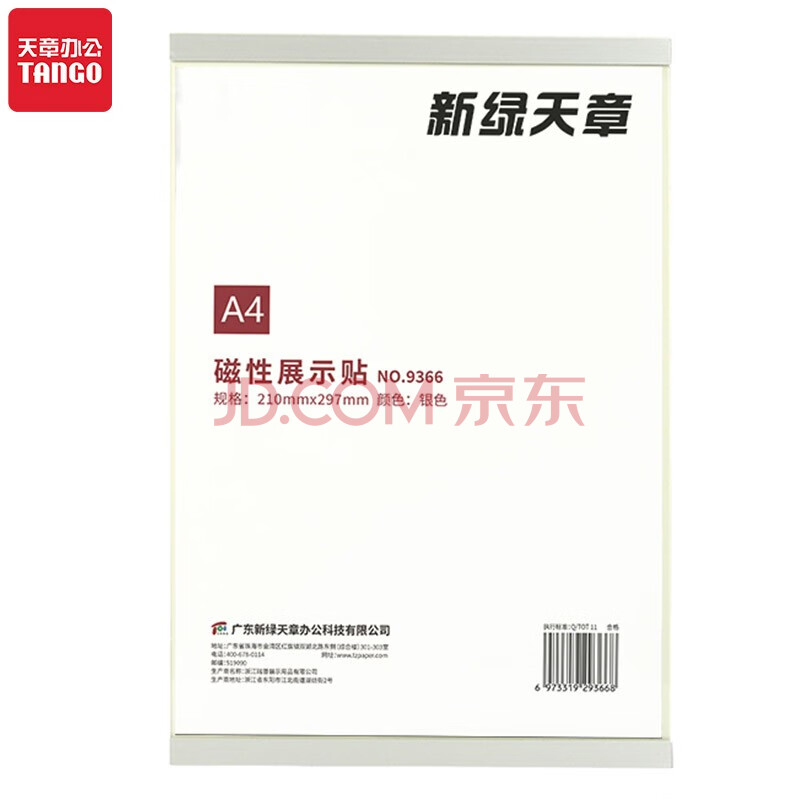 商品相册:天章办公(TANGO)磁性展示贴A4磁力贴 营业执照保护套 公告栏教室 营业执照正本框 磁性框通知展示栏荣誉墙第