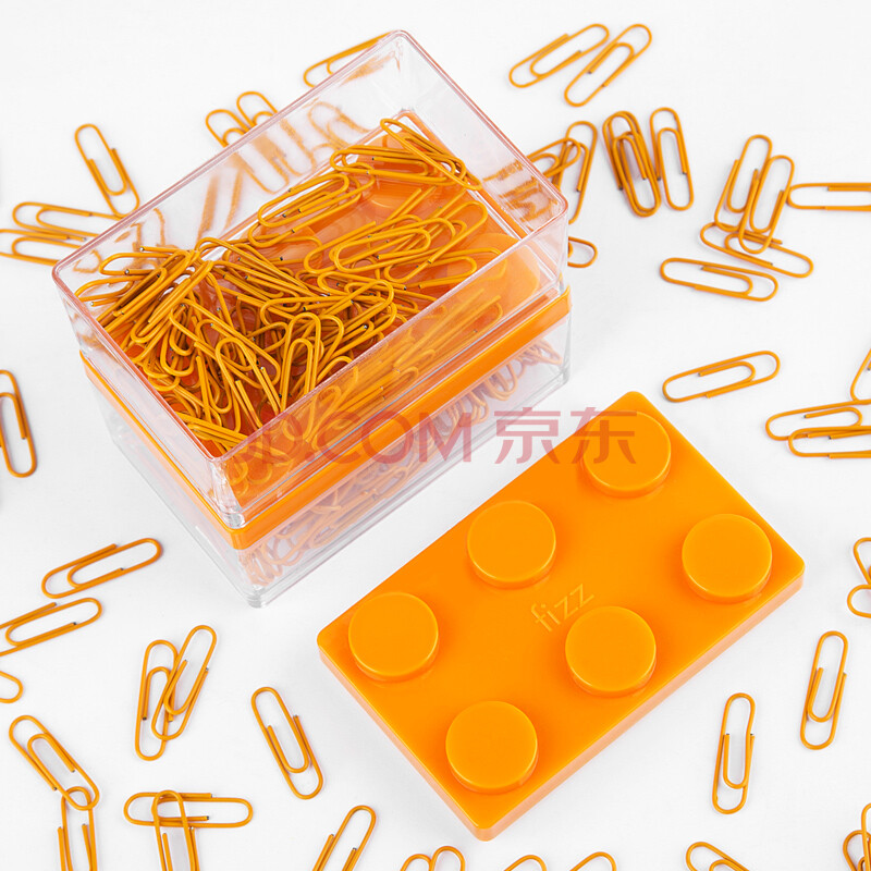 商品相册:飞兹(fizz)29mm160枚装金属回形针积木盒装不易生锈彩色发票文件曲别针财会办公用品橙色 FZ21907 第