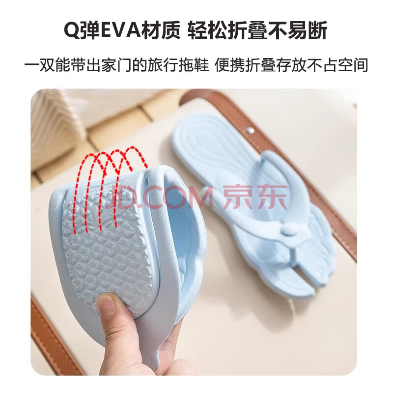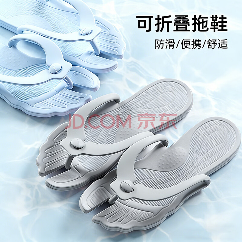 商品相册:欣沁旅行拖鞋便携式可折叠软底防滑人字拖沙滩夹板拖鞋 浅灰色第