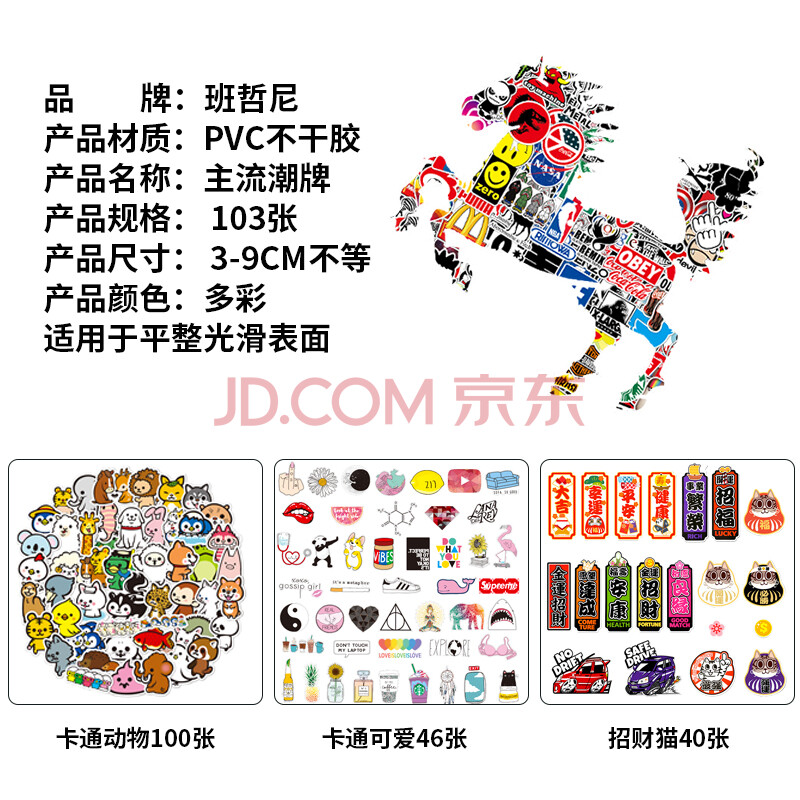 商品相册:班哲尼行李箱贴纸冰箱车贴墙贴笔记本收纳盒柜子装饰不留胶个性贴纸第