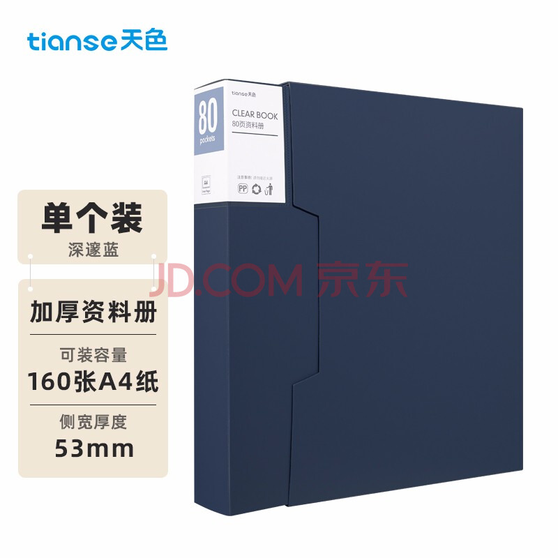 商品相册:天色 A4/80页大容量资料册插页文件夹 加厚带外壳活页收纳册档案盒试卷收纳活页夹 TS-20008 深邃蓝第