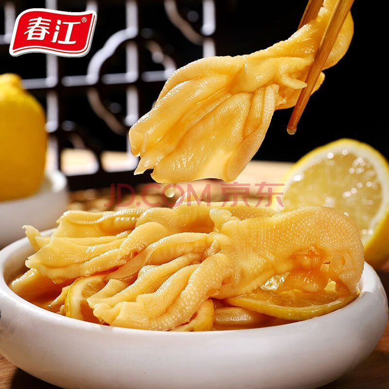 商品相册:春江无骨鸭掌 柠檬味120g 卤味鸭爪去骨休闲零食 独立小包装5支装第