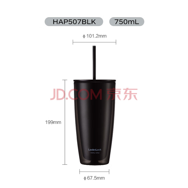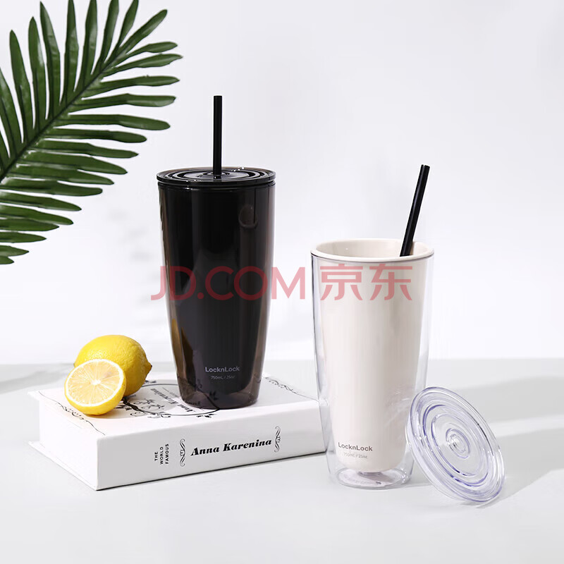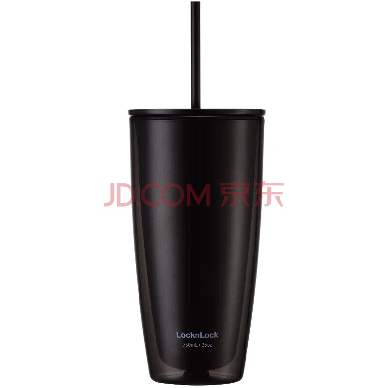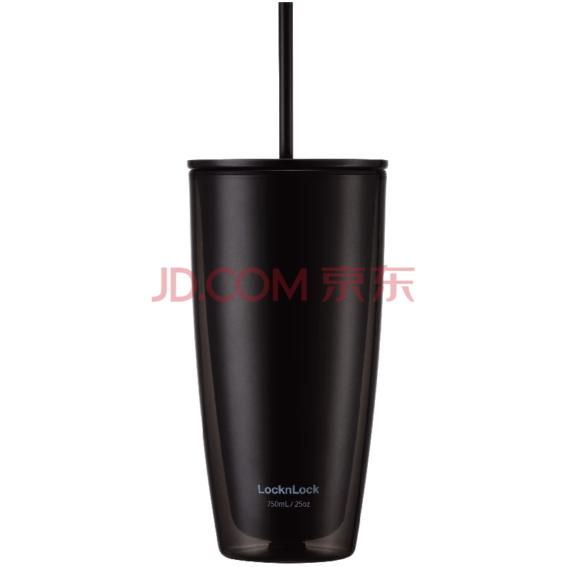 商品相册:乐扣乐扣(LOCK&LOCK)双层吸管塑料杯学生上班族夏日大容量畅饮便携水杯750ML黑色 第