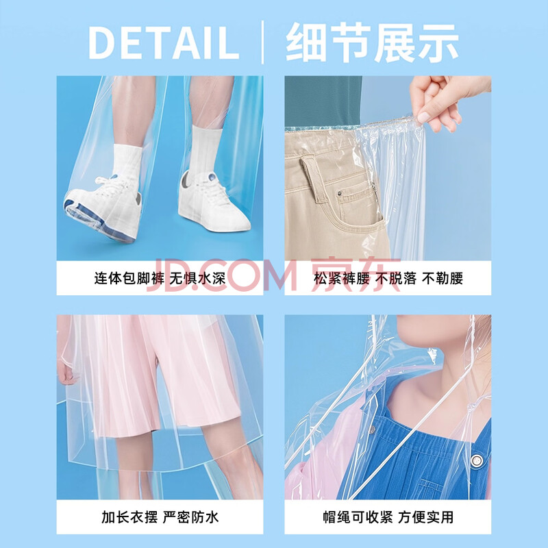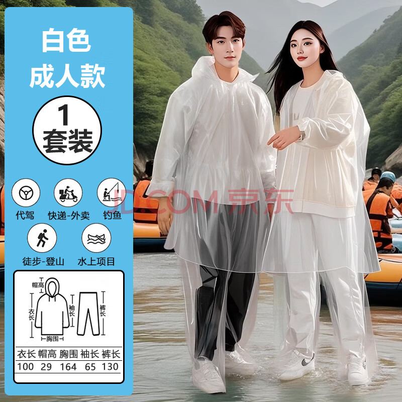 商品相册:欣沁一次性成人雨衣雨裤套装分体式漂流雨衣包脚款防雨罩雨披男女通用第
