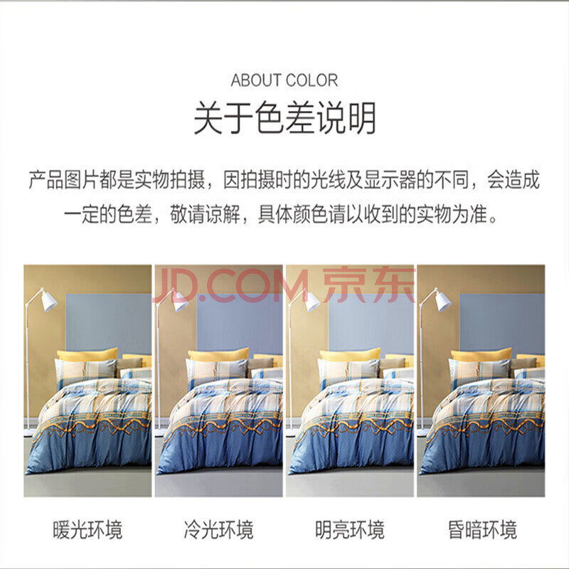 商品相册:富安娜床上四件套纯棉100%全棉升级抗菌床品 双人简约床单被套203×229cm第