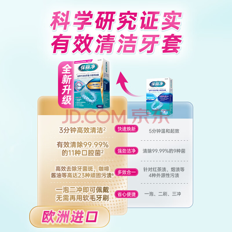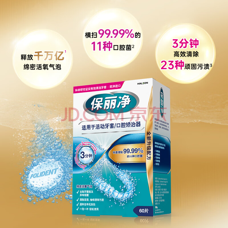 商品相册:保丽净假牙清洁蓝炮弹牙套清洁泡腾片除异味清污渍60片 新旧包装随机发第