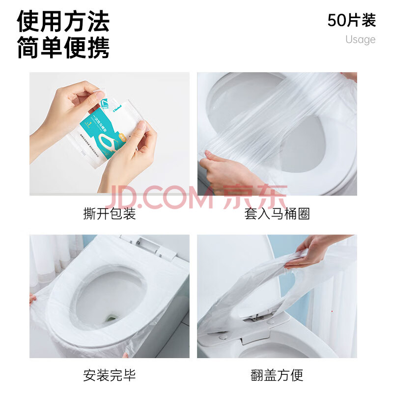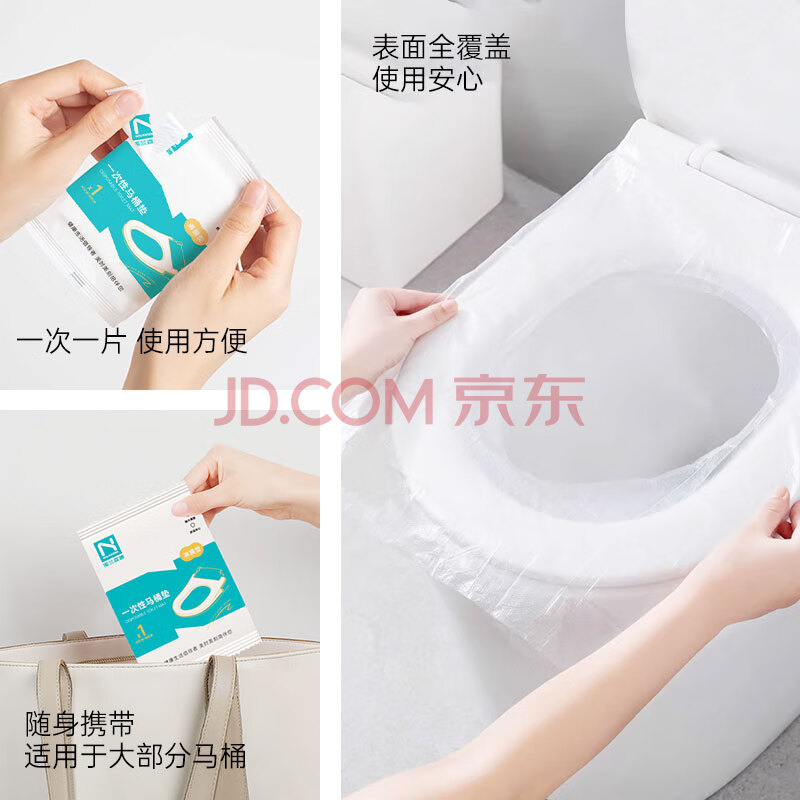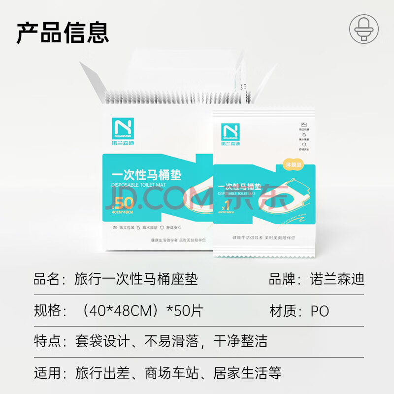 商品相册:诺兰森迪 一次性马桶垫 PO膜套入式坐便圈垫 酒店旅行防水隔脏 50片装第