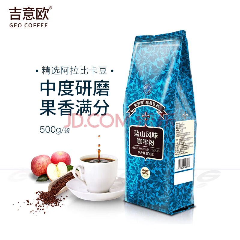 商品相册:吉意欧蓝山风味咖啡粉500g阿拉比卡豆果香满分黑咖啡手冲果香清新第