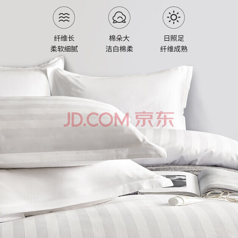 商品相册:源生活 白色酒店四件套 60支星级3cm缎纹纯棉床上用品床单被套 1.5米床第