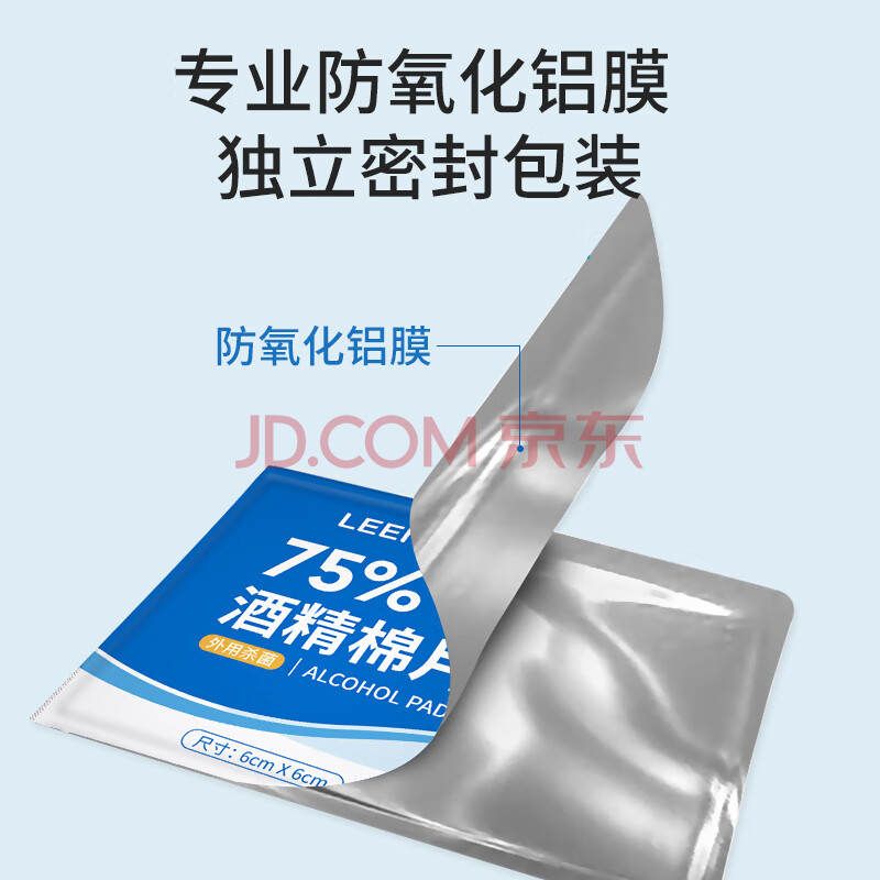 商品相册:粒米75%酒精湿巾消毒棉片100片独立装擦手机皮肤消毒卫生杀菌湿纸巾第
