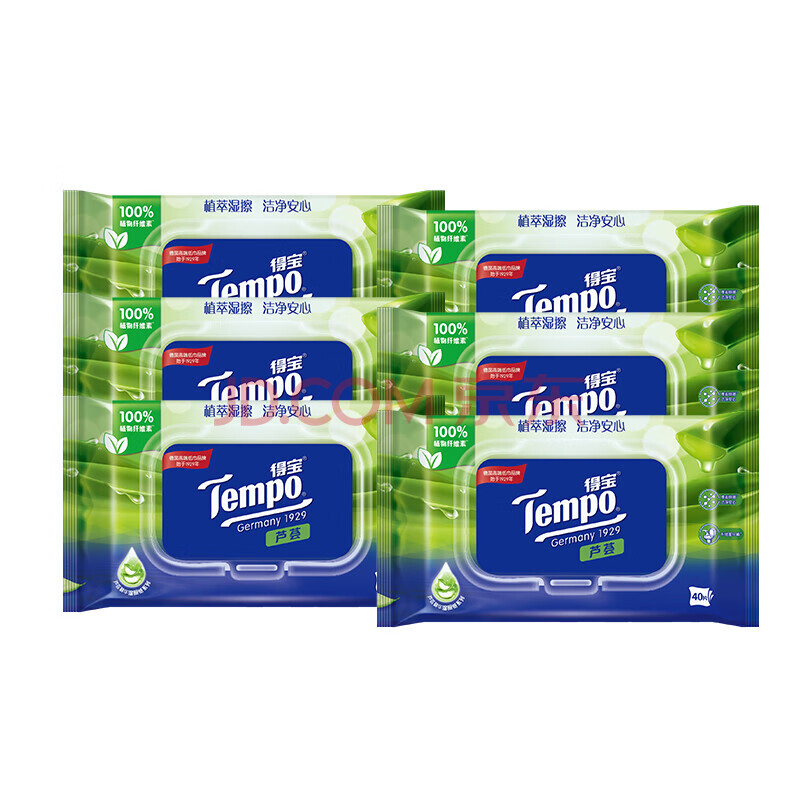 商品相册:得宝(Tempo) 湿厕纸芦荟植萃精华6包*40片清洁湿纸巾可搭配卫生纸使用第
