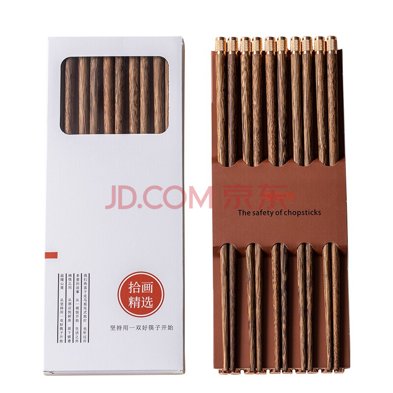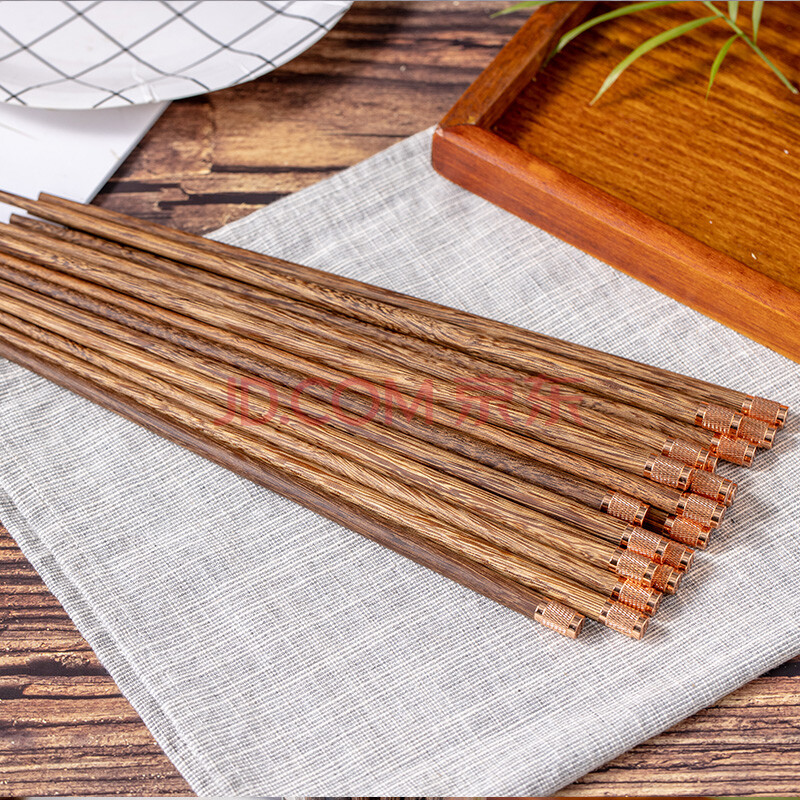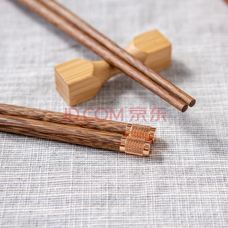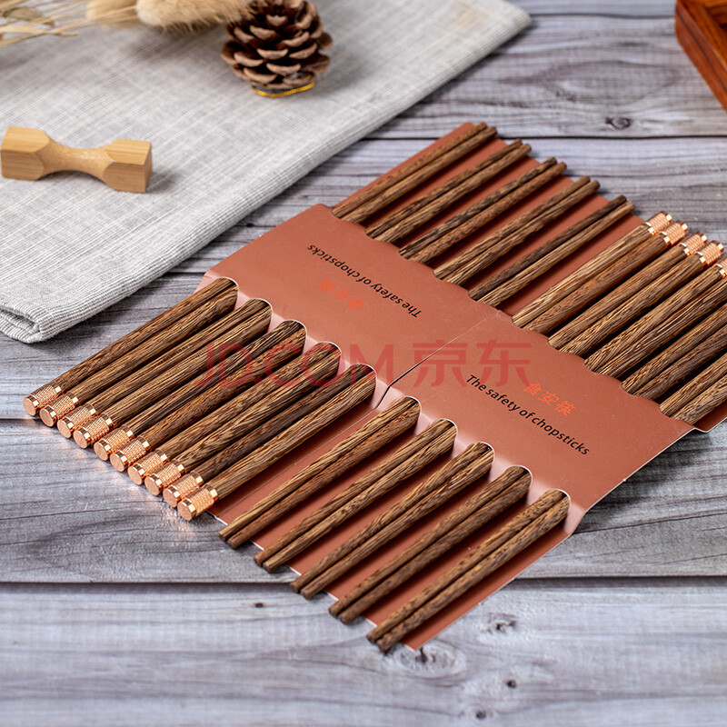 商品相册:拾画 无漆无蜡家用防滑鸡翅木筷子 创意铜头玫瑰金筷子十双装第
