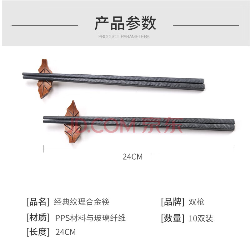 商品相册:双枪耐高温不易滋生细菌家用合金筷子餐具套装 10双装韩国筷子第