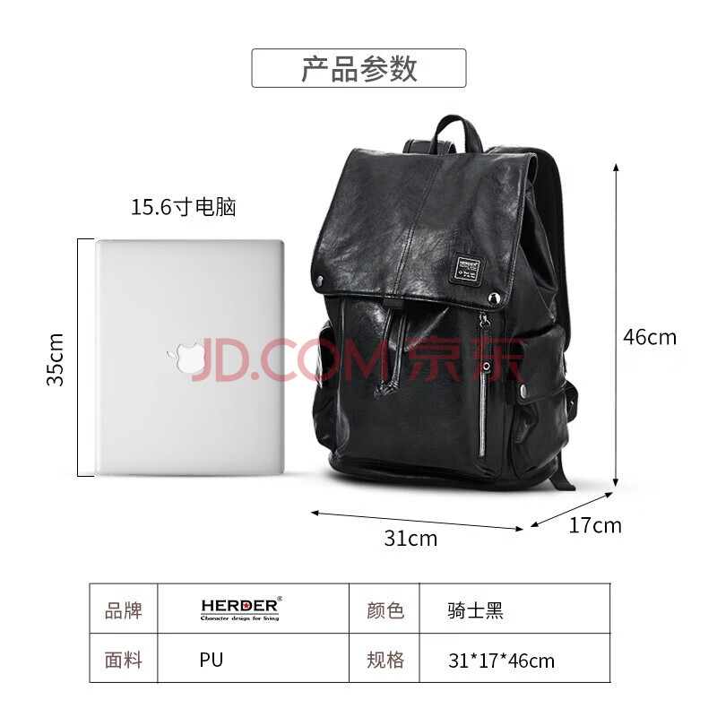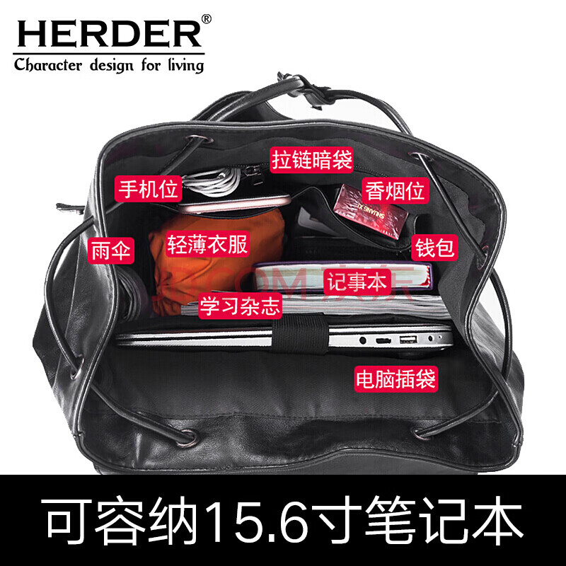 商品相册:赫登尔(herder)双肩包男潮流旅行休闲背包15.6英寸电脑包大容量大中学生书包第