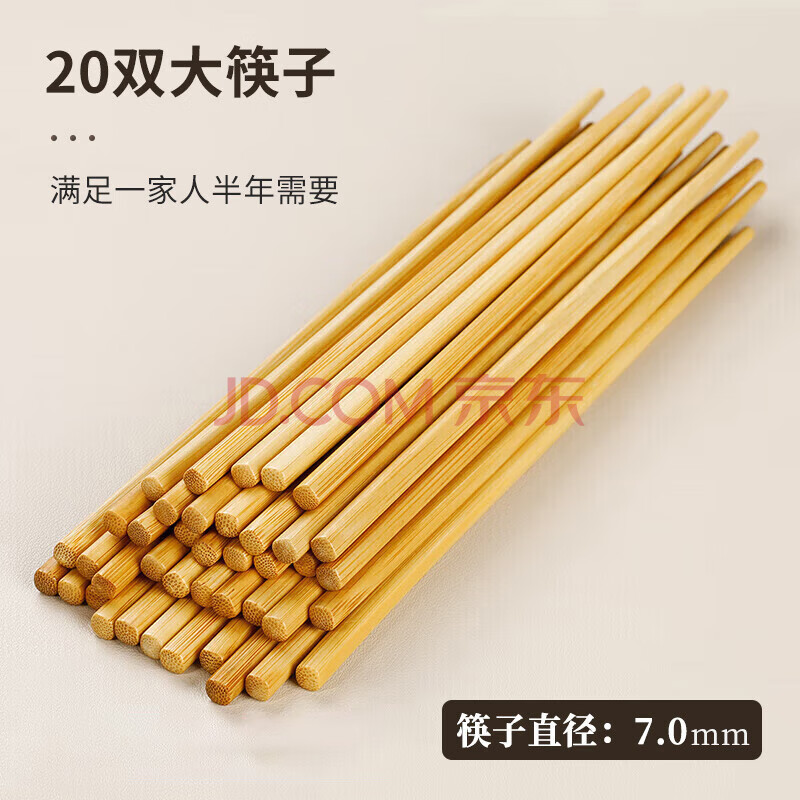 商品相册:唐宗筷天然竹筷子20双装 无漆无蜡原竹 家用筷子酒店用商用餐具套装第