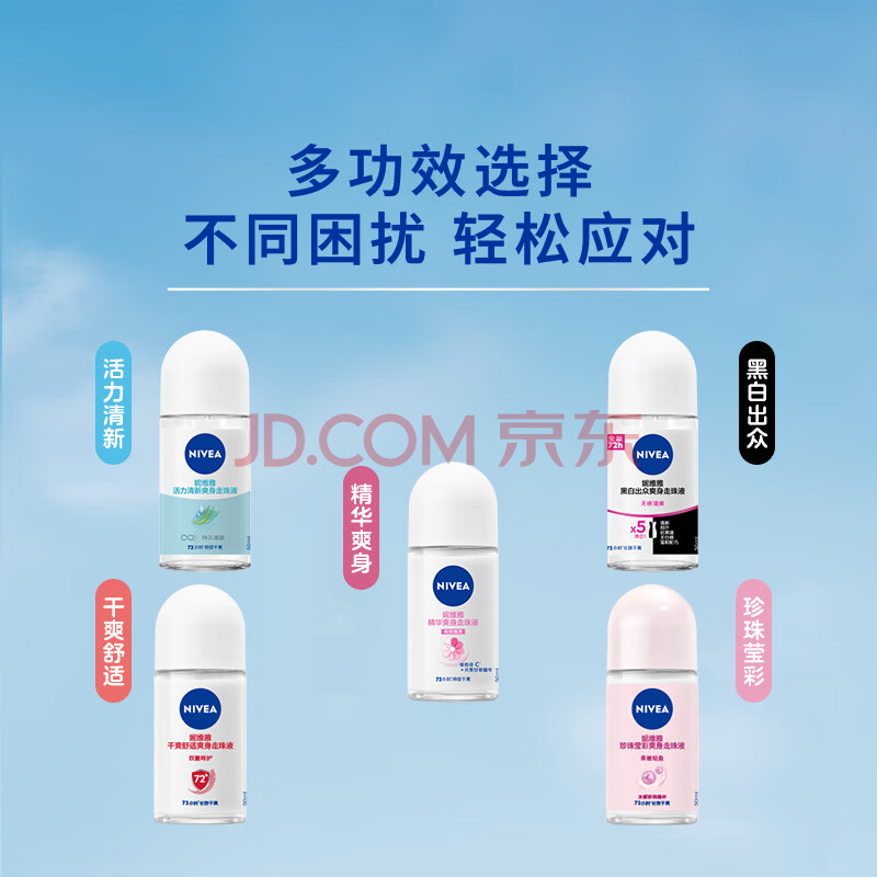 商品相册:妮维雅(NIVEA)抑汗香体腋下止汗露干爽滚珠干爽舒适爽身走珠液50ml第1张/共6