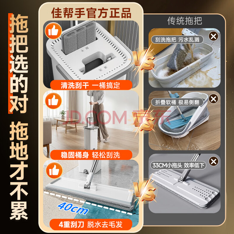 商品相册:佳帮手平板拖把40cm6布家用一拖净免手洗2026带桶一套洗拖地神器墩拖布第