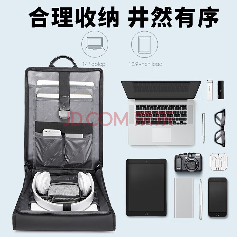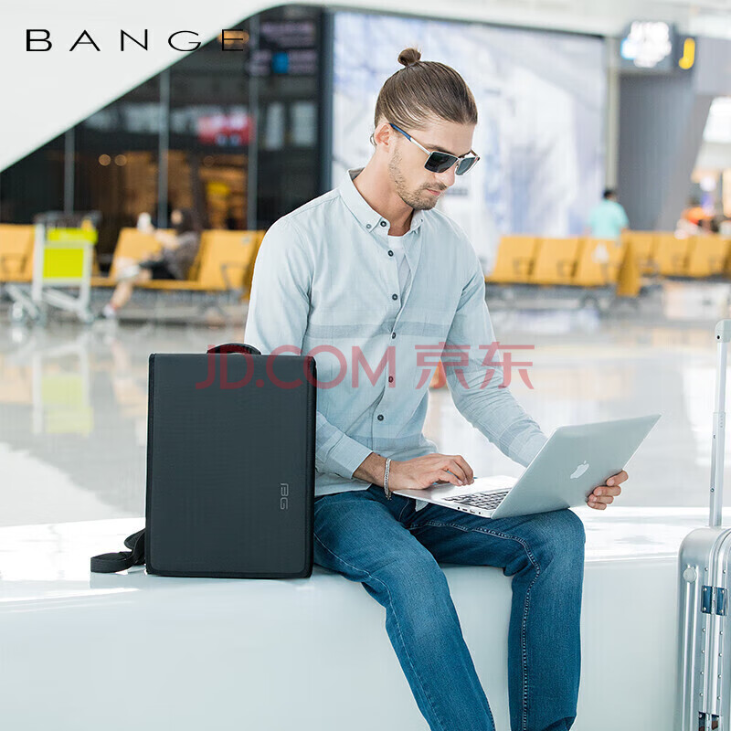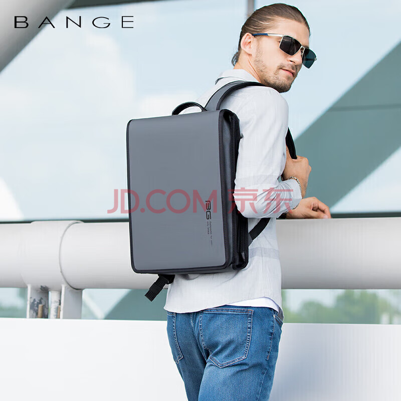 商品相册:班歌超薄14英寸电脑包简约书包时尚轻便双肩包通勤双肩背包男7252灰第