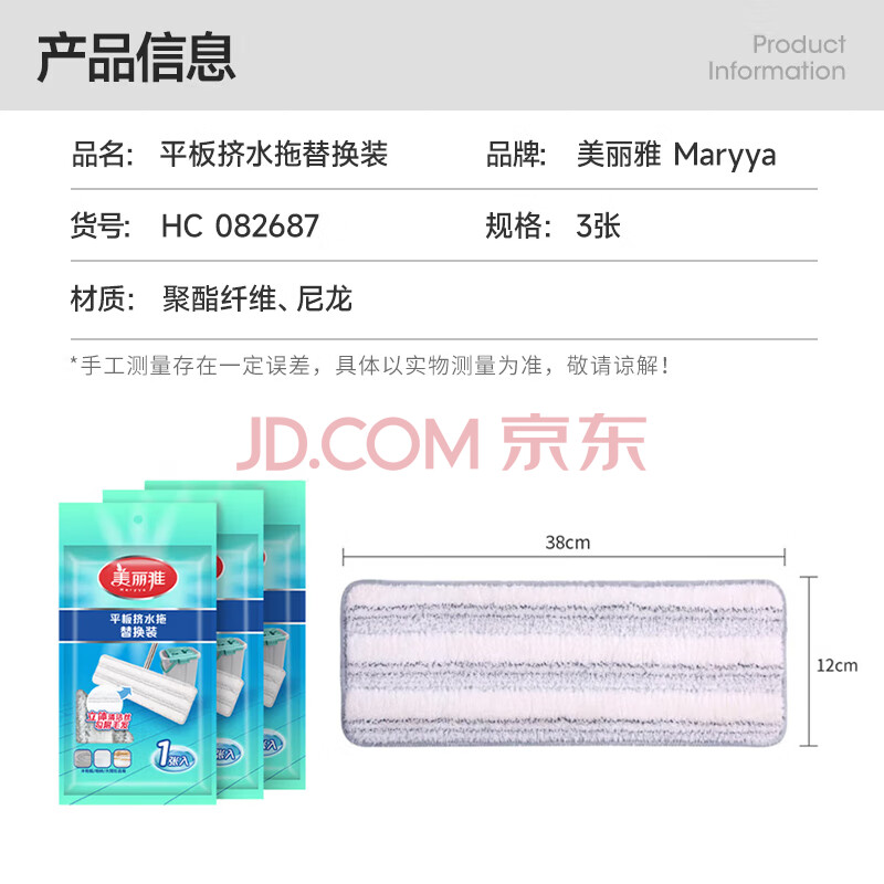 商品相册:美丽雅平板拖把替换布不带桶38*12cm适用于带桶平板拖把洗刷刷系列3拖头第