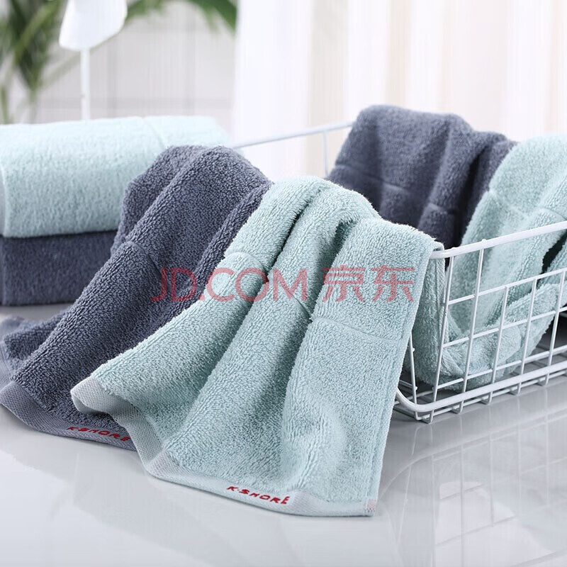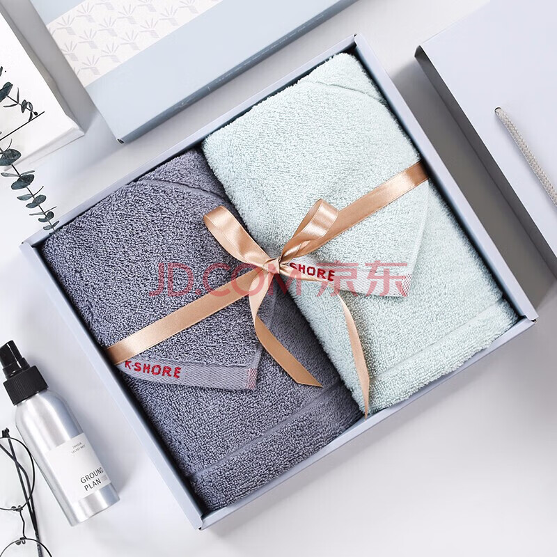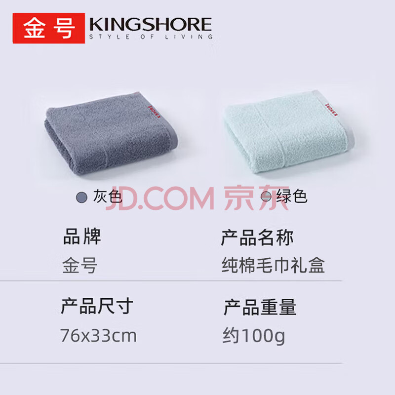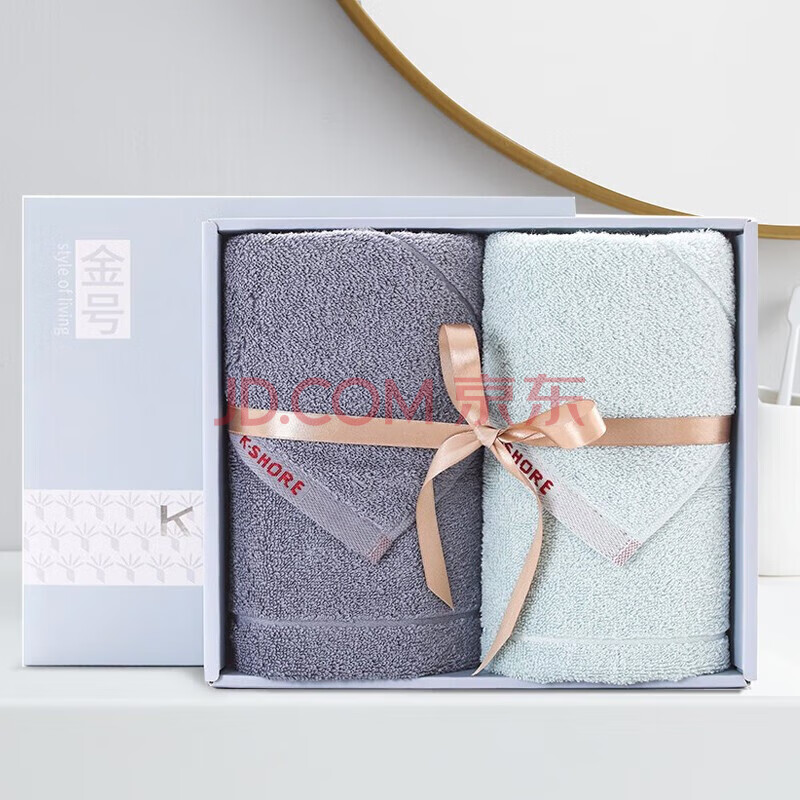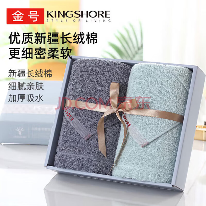 商品相册:金号毛巾礼盒2条装 纯棉A类家用洗脸面巾 兰+灰100g/条76*33cm第