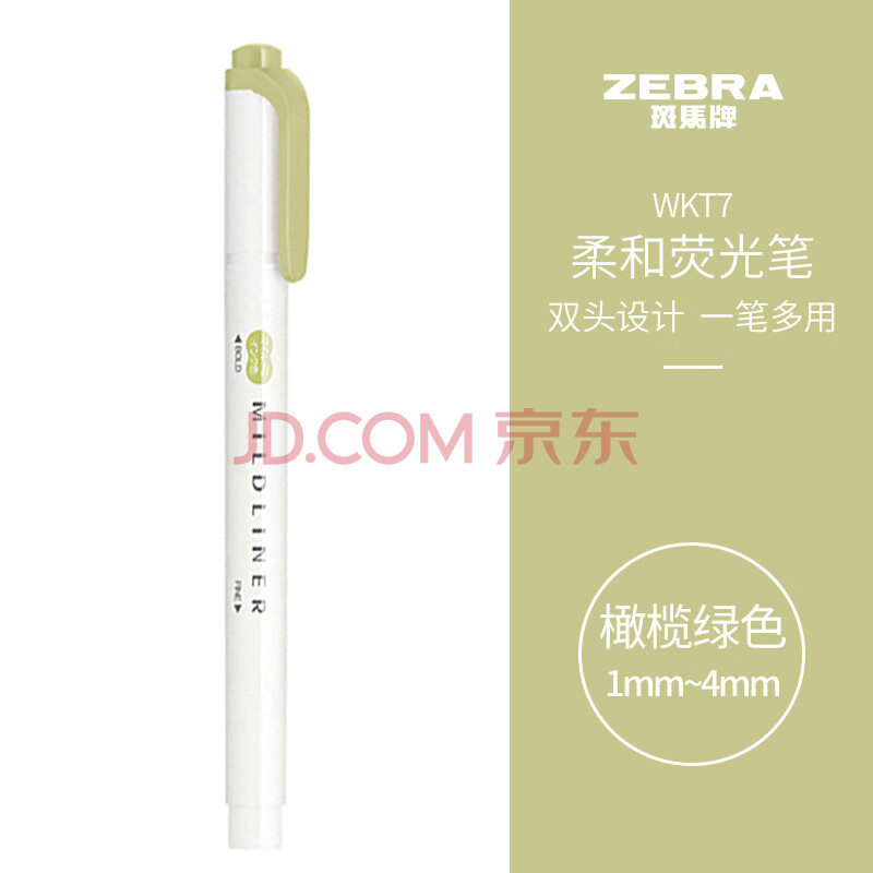 商品相册:斑马牌 (ZEBRA)双头柔和荧光笔 mildliner系列单色划线记号笔 学生标记笔 WKT7 柔和橄榄绿第