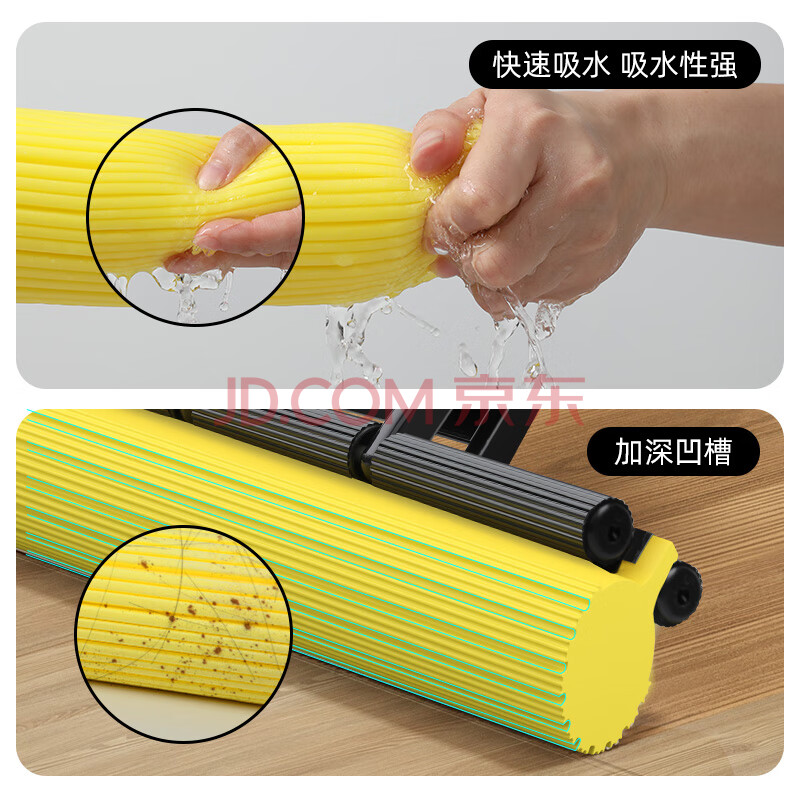 商品相册:好媳妇胶棉拖把27cm共1棉头 长杆懒人免手洗海绵拖把 家用办公室第