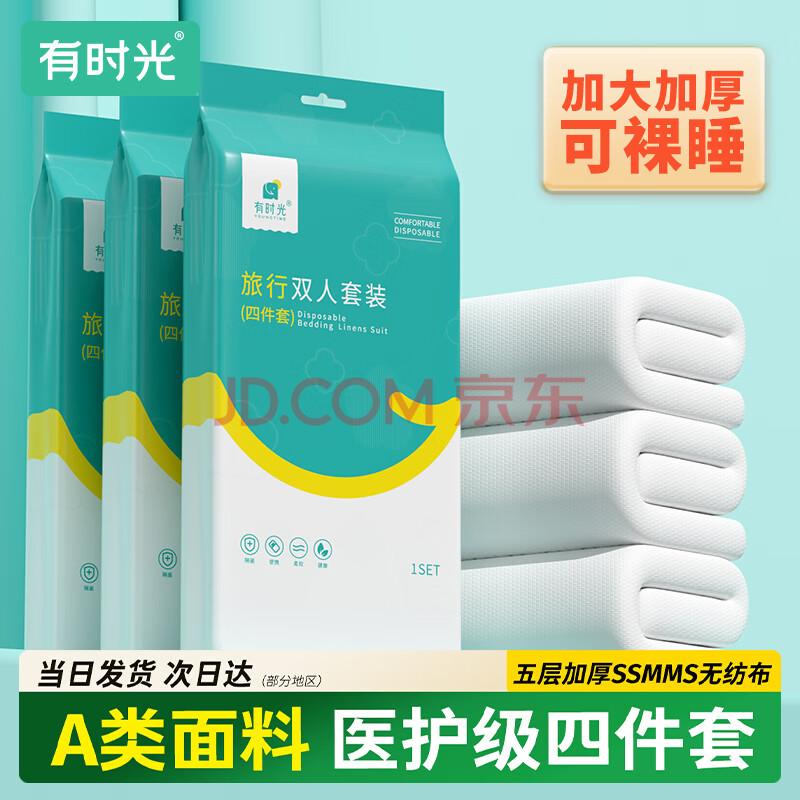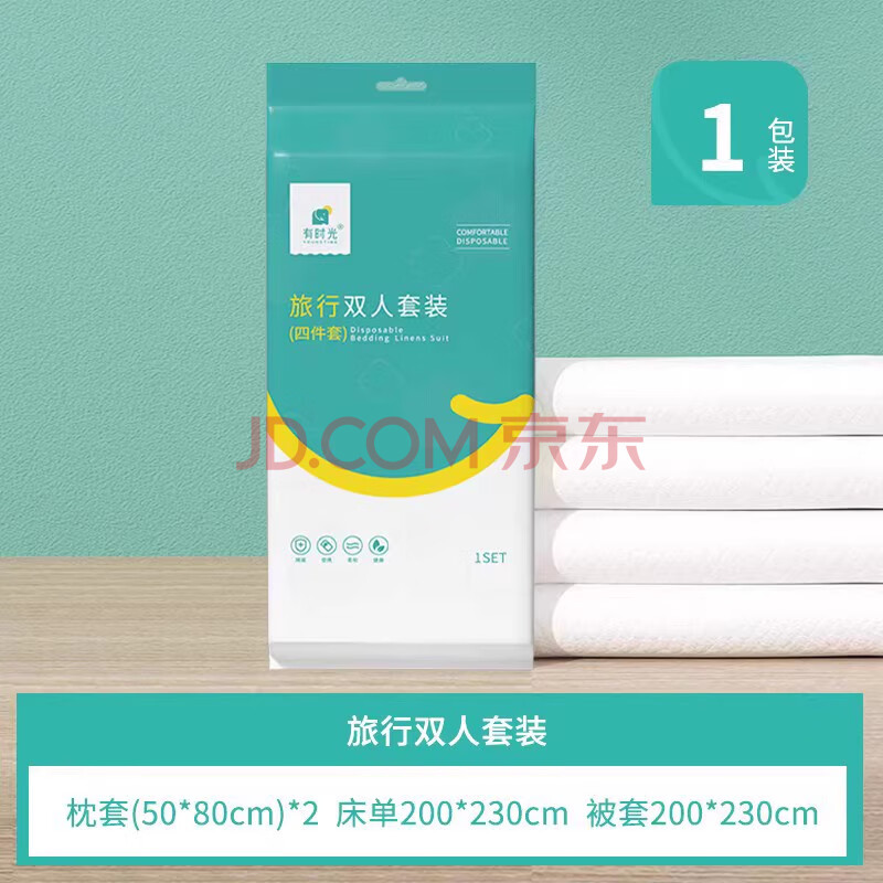 商品相册:有时光一次性床上四件套床单被罩隔脏旅行必备一次性酒店床品双人款1套第