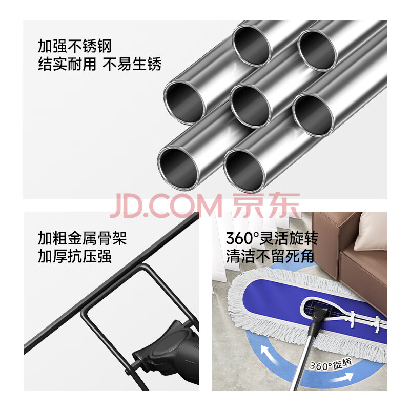 商品相册:五月花尘推墩布60cm单配布平板拖把不锈钢拖把干湿两用商场物业拖地墩布第