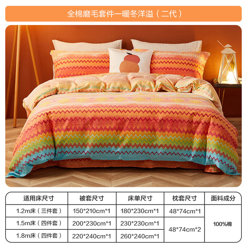 商品相册:博洋家纺纯棉磨毛四件套冬季加厚保暖全棉套件床上用品1.8米床暖冬洋溢第
