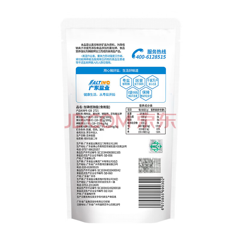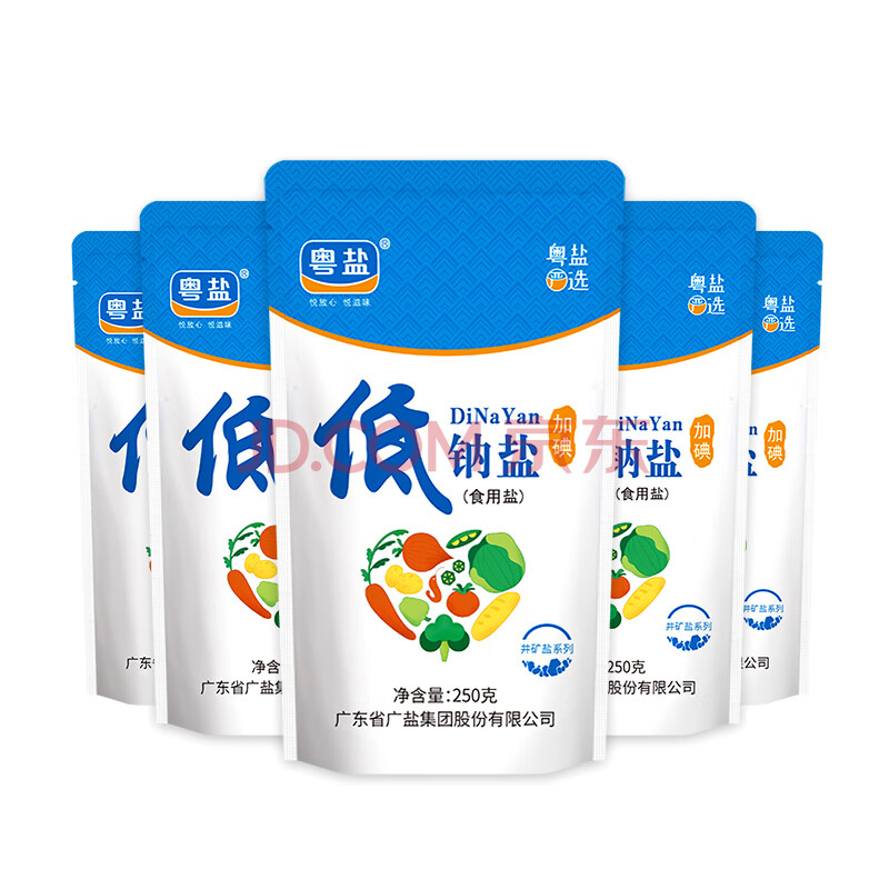 商品相册:粤盐 低钠盐250g*5袋 【加碘】食用盐 老人儿童钾盐减钠不减咸 调味品第